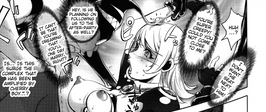 The enemies that Mighty Wife defeats to keep her city safe. They attack those with lively energy when going on a rampage. The Cherry Boys (1) possess tentacles (2) that allow to hold Wife down and put her into various positions as well as an antenna (3) that allows it to transmit the thoughts of the host. The Cherry Boys also seem to have regenerative abilities, as shown with virgins like Karateka, who haven't had sex for over 30 years. The Cherry Boys are used to help the Queen accumulated Dark Energy (DE) to send her back home. It also seems that her accumulated energy cannot be distributed by "inferior seeds" of berserk Cherry Boys. It is also shown in chapter 8 that the Cherry Boys have a "Cherry Spark" ability (4).
